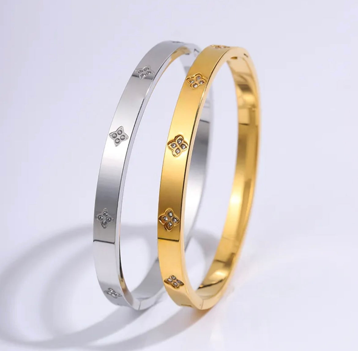 Flower Bangle - Silver and Gold
