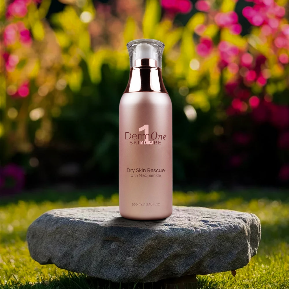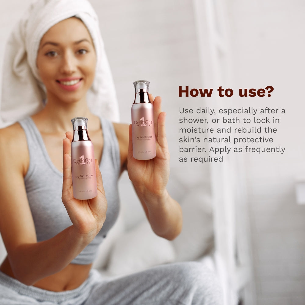 Derm #1 Skincare - Dry Skin Rescue Moisturizer with Vitamin B3. Enjoy a massive 3.38 ounces. An all-over facial and body moisturizer enriched with the finest skin-nurturing natural oils and 5% vitamin B3, to give skin a rich, elegant texture and 24 hours of hydration. With continued use, this product can help skin become resilient to dryness. Suitable for everyday use. Fragrance-free, non-greasy, and non-comedogenic. #1 best seller with physicians and skincare professionals. Suitable for all skin types. All our clean beauty products are vegan, cruelty-free, made with organic and natural ingredients, gluten-free, and great for the environment.