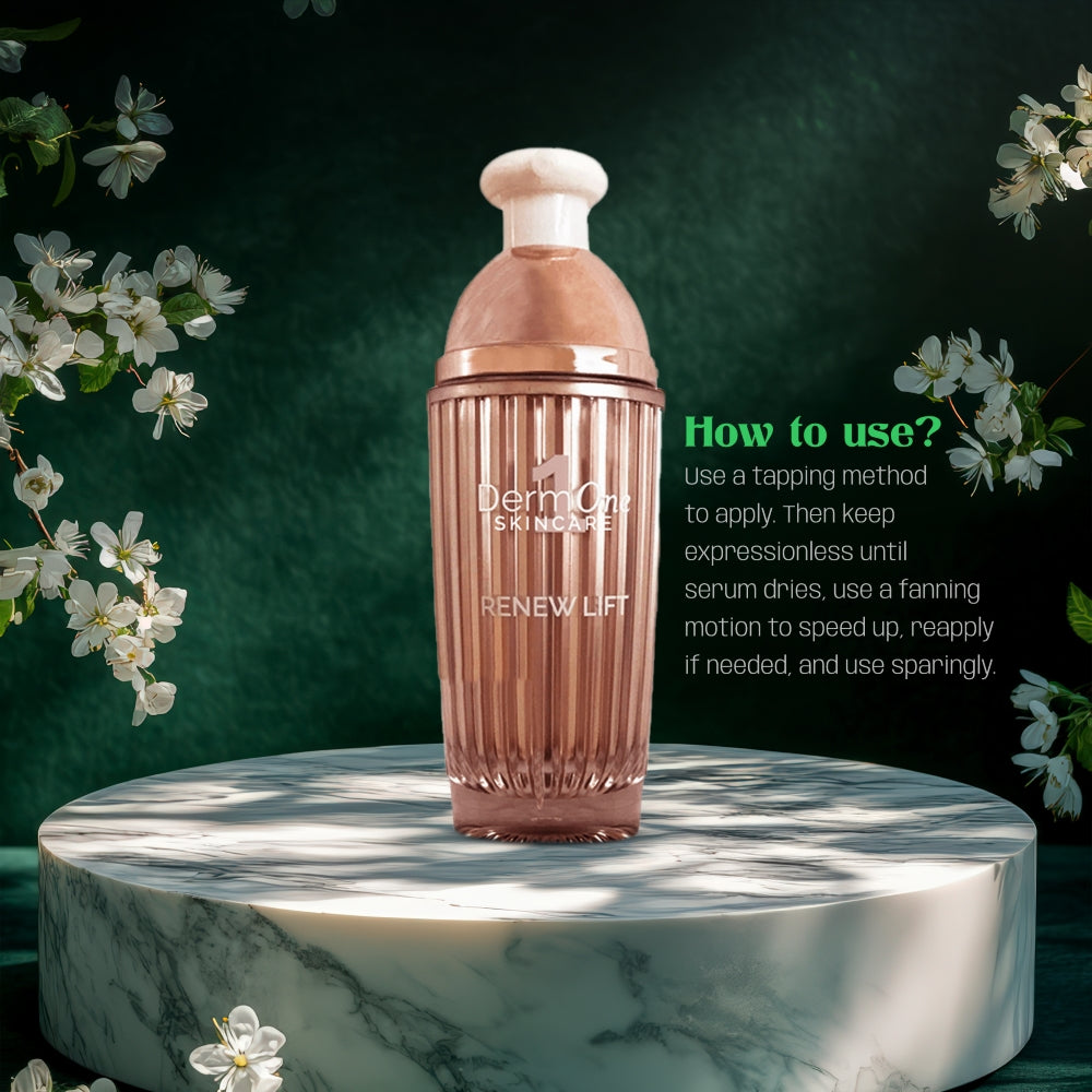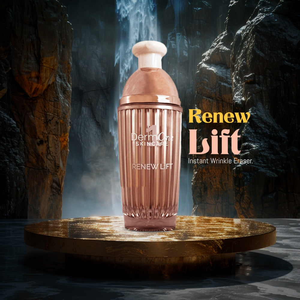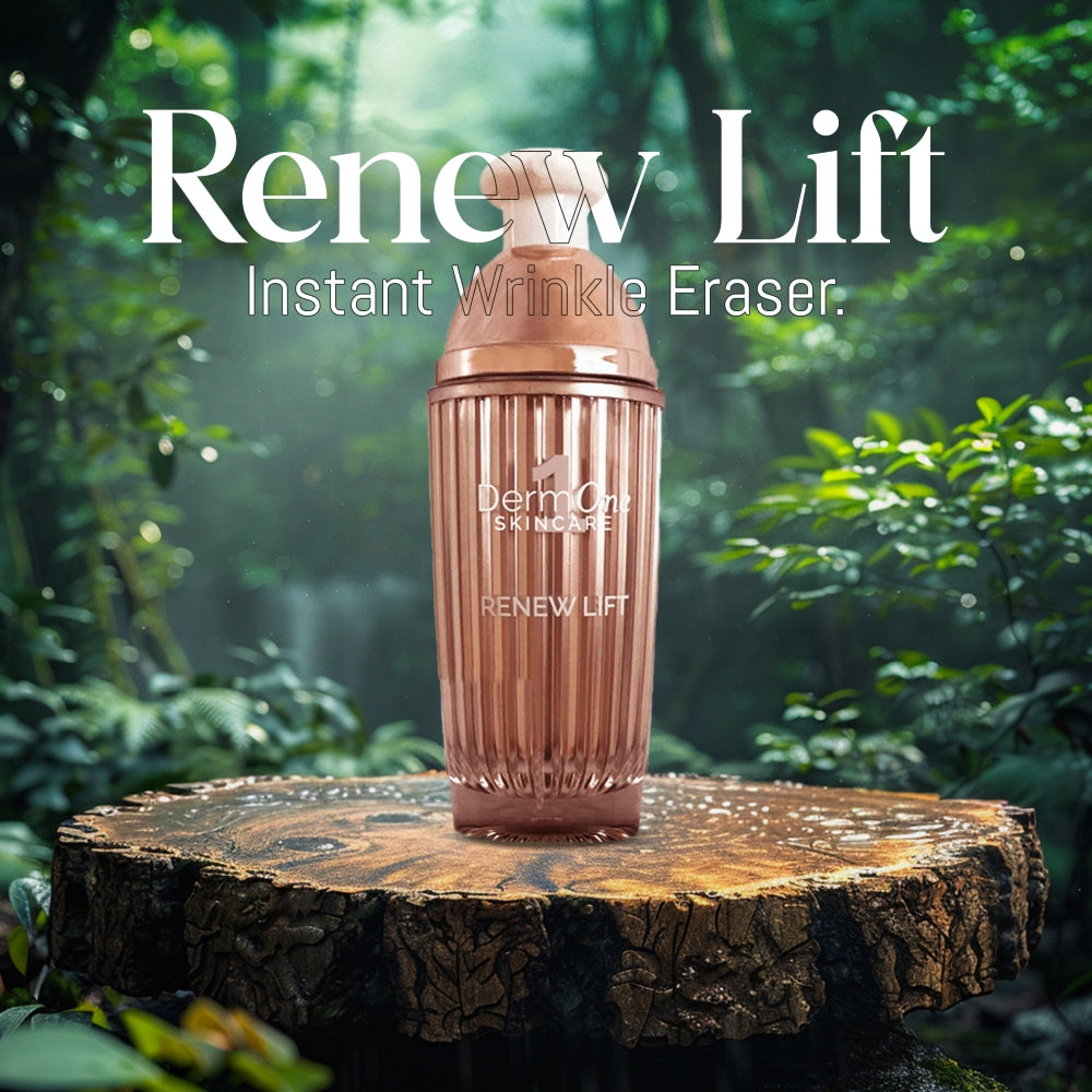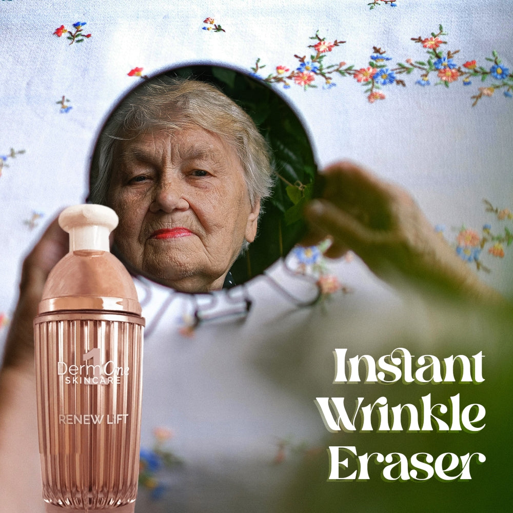 Derm #1 Skincare – Renew Lift Instant Wrinkle Eraser. No needles are required! Instantly reduce wrinkles, eye bags, and expression lines in as little as 5 minutes! Lasts for hours. Our topical formula is designed to visibly redefine, smooth, and lift facial contours within minutes. A powerful cocktail of botanical extracts, a skin-lightening and tightening complex, minerals, and anti-aging peptide deliver dramatic age-defying results. All our clean beauty products are vegan, cruelty-free, made with organic and natural ingredients, gluten-free, and great for the environment.