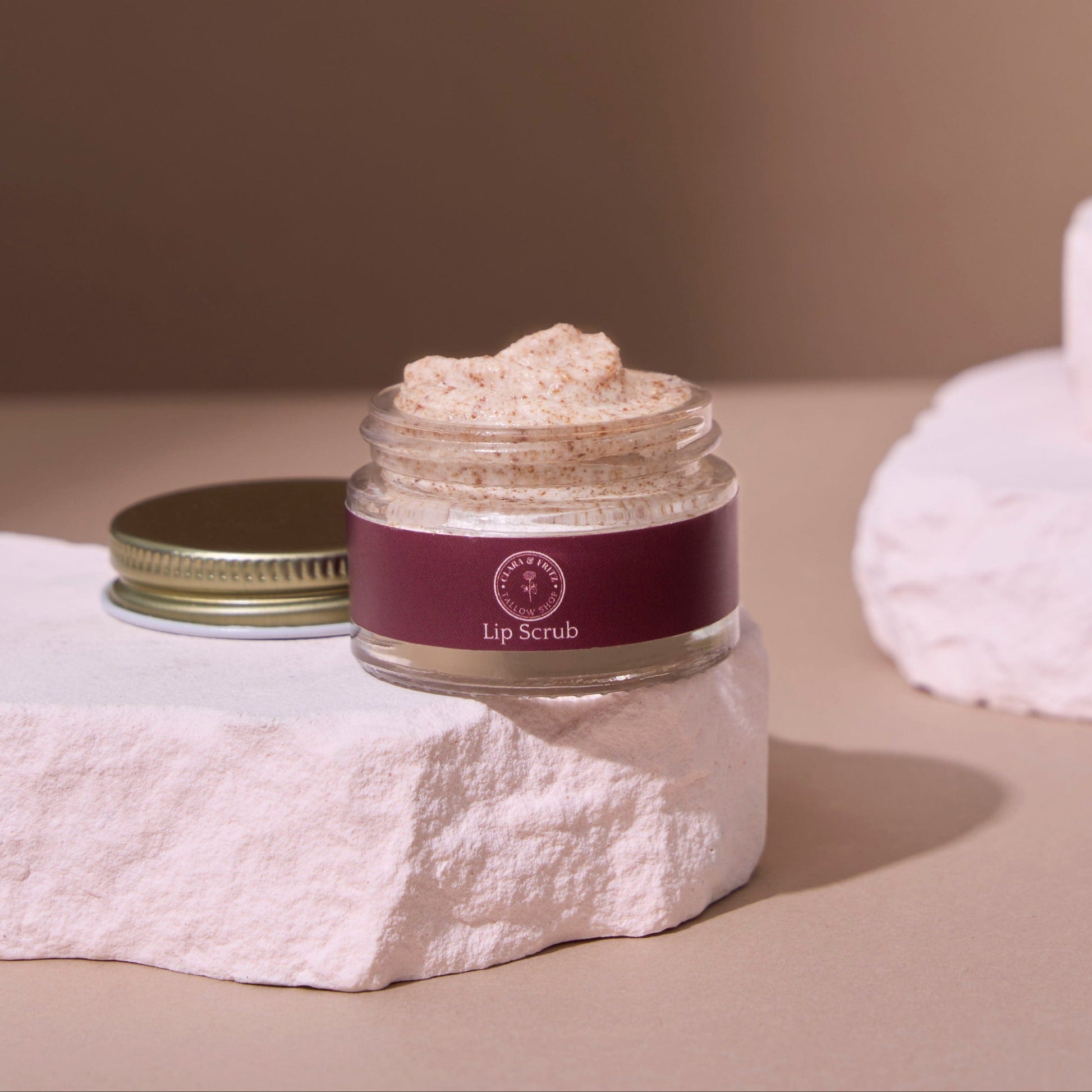 - Lip Scrub: Gently exfoliates and smooths dry, parched lips, prepping them for lip color by day and a moisturizing treatment by night.