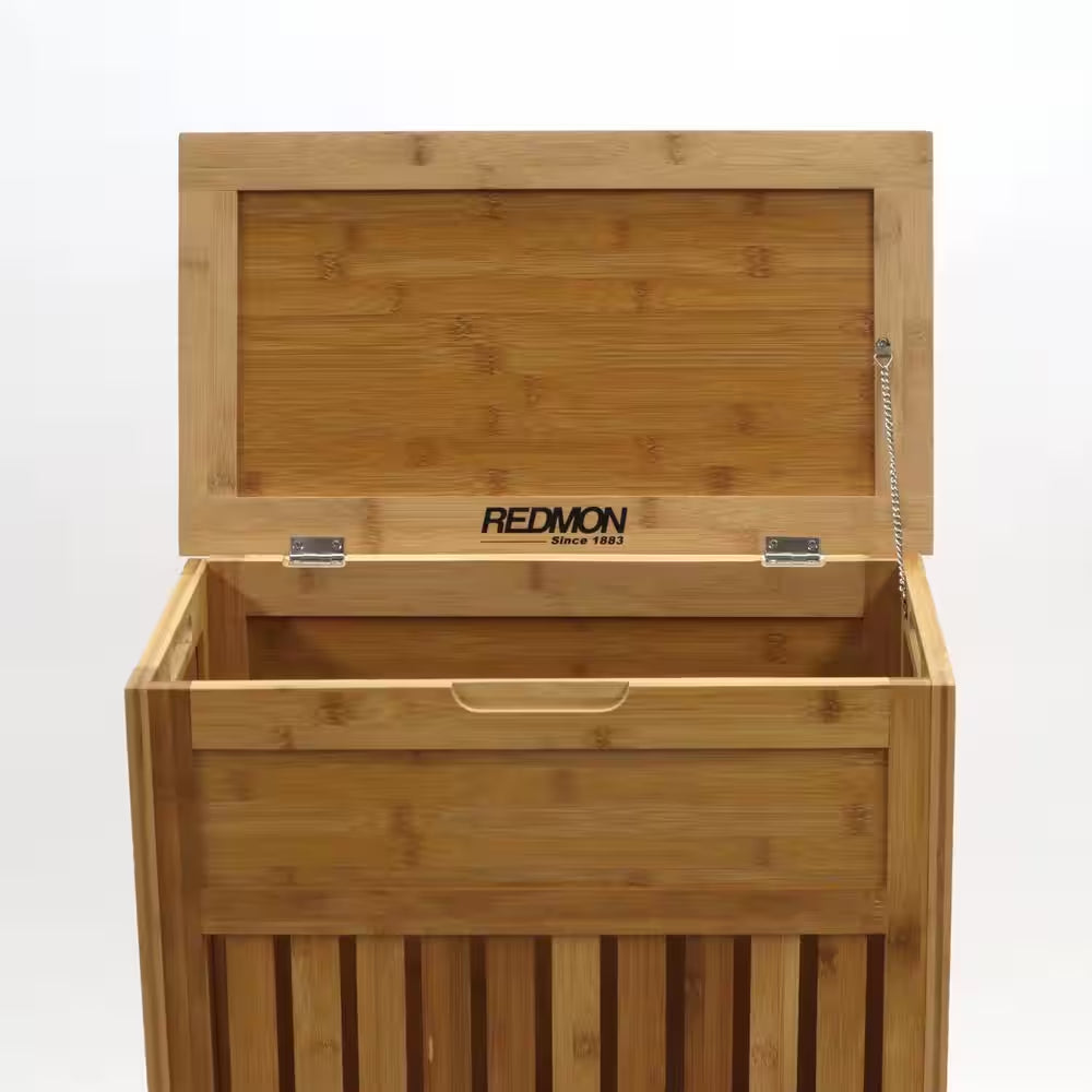 Elevate your home organization with the Redmon Bamboo Hamper, crafted from 100% eco-friendly bamboo for lasting quality and natural appeal. This full-size hamper combines modern style with practical function, making it ideal for your bathroom, bedroom, laundry room, or even covered outdoor spaces like a spa or deck.