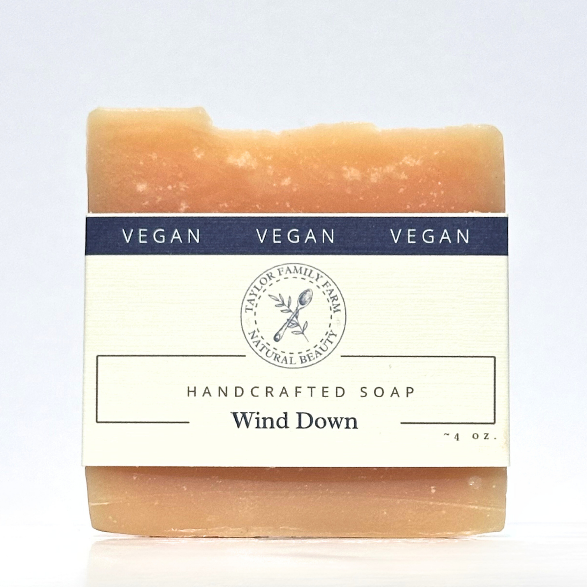 Unwind naturally with Wind Down Vegan Soap, a refreshing blend of eucalyptus, camphor, and lemongrass essential oils. This limited-edition summer bar brings the feeling of cool evening air and clean skin after a long day in the sun — herbal, light, and calming.