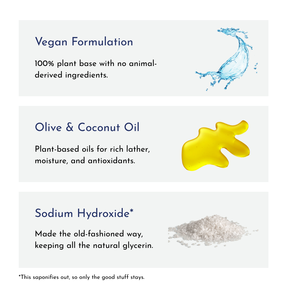 Free from dyes, synthetic fragrances, and harsh additives, this soap is a clean, conscious choice for your wind-down ritual with no animal products.
